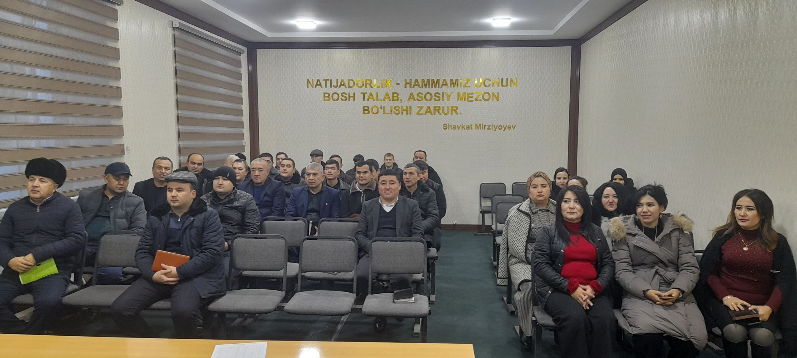 Mazkur o'quv seminarida statistika boshqarmasi bosh yuriskonsulti Bohodir Ismatullayev tomonidan O‘zbekiston Respublikasi Prezidentining 27.12.2024-yildagi “Tadbirkorlar uchun teng sharoitlar va adolatli raqobat muhitini ta’minlash bo‘yicha navbatdagi chora-tadbirlar to‘g‘risida”gi PF-229-son Farmonining mazmun-mohiyati haqida boshqarma xodimlarga ma’lumotlar berib o‘tildi.