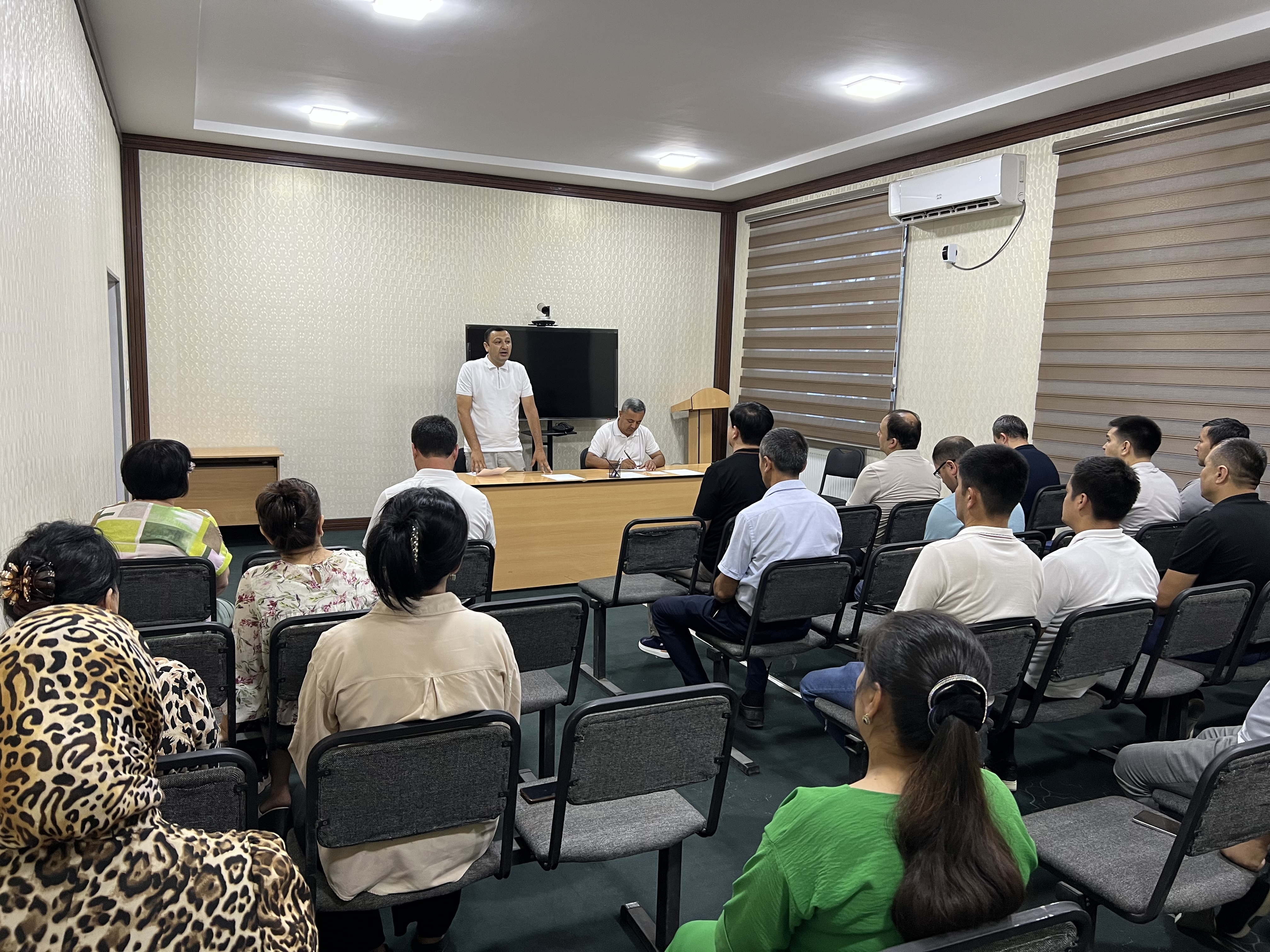 Tadbirda A. Xasanov O‘zbekiston Respublikasi Prezidentining 2022-yil 15-aprelda tasdiqlangan 764-sonli “Kiberxavfsizlik to‘g‘risida”gi Qonuni mazmun-mohiyatini xodimlarga tushuntirib, kiberxavfsizlik sohasidagi munosabatlarni tartibga solish hamda axborot tizimlari va resurslarini kiberjinoyatlardan himoyalashning huquqiy asoslari haqida ma’lumot berdi.