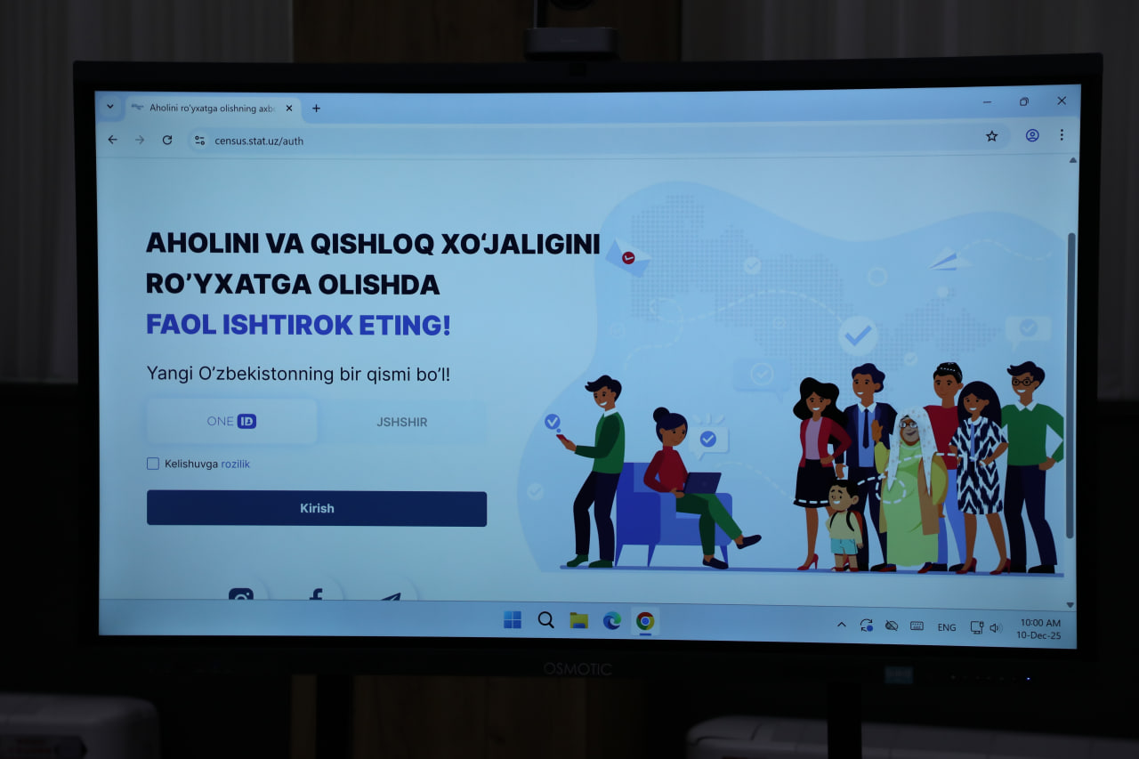 2025-yil 10-dekabr kuni O‘zbekiston Respublikasi Markaziy bankining Namangan viloyat bosh boshqarmasi binosida viloyat statistika boshqarmasi mutaxassislari tomonidan bank tizimi xodimlari uchun aholi va qishloq xo‘jaligini ro‘yxatga olish jarayonida onlayn ro‘yxatdan o‘tish bo‘yicha amaliy seminar o‘tkazildi.