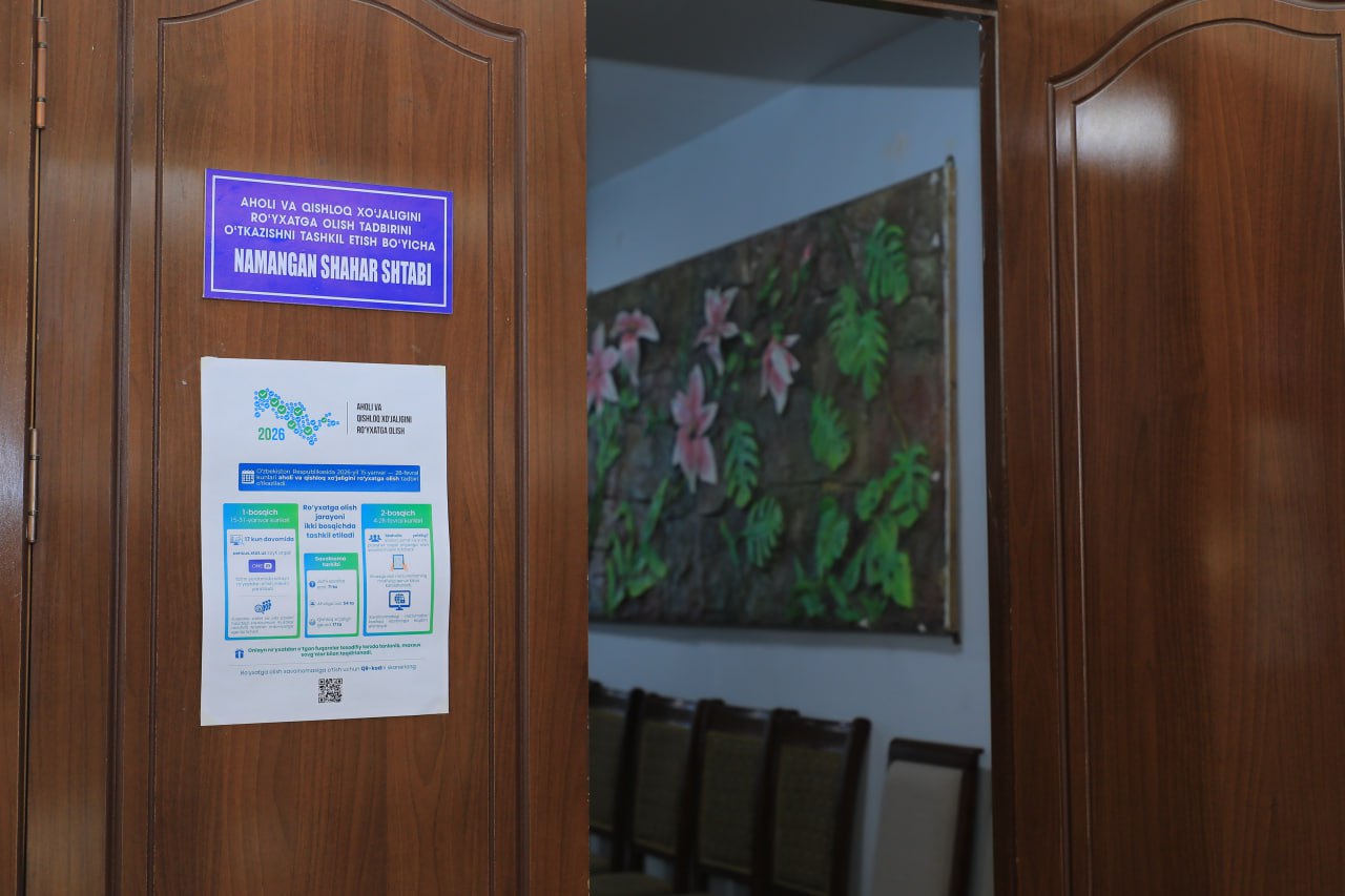 Namangan shahar hokimi Ayubxon Kamalov mazkur shtab faoliyati bilan tanishdi. Hozirda shtabda mahalla yettiligi uchun maxsus o‘quv mashg‘ulotlari tashkil qilinib, ro‘yxatga olish tartibi, savolnomalar mazmuni, elektron tizimdan foydalanish bo‘yicha amaliy ko‘nikmalar berilmoqda.