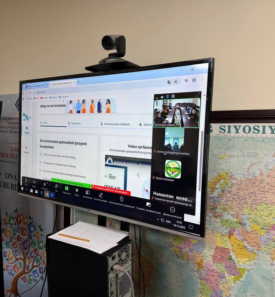 O‘zbekiston Respublikasi Prezidentining 2025-yil 19-sentabrdagi “O‘zbekiston Respublikasida aholi va qishloq xo‘jaligini ro‘yxatga olish tadbirini o‘tkazish to‘g‘risida”gi PF–173-son Farmoni ijrosini ta’minlash maqsadida, 2025-yil 18-dekabr kuni Namangan viloyati Fermerlar kengashi, shahar va tuman bo‘limlari mutaxassislari hamda hisobchi xodimlar uchun o‘quv-amaliy seminar o‘tkazildi.