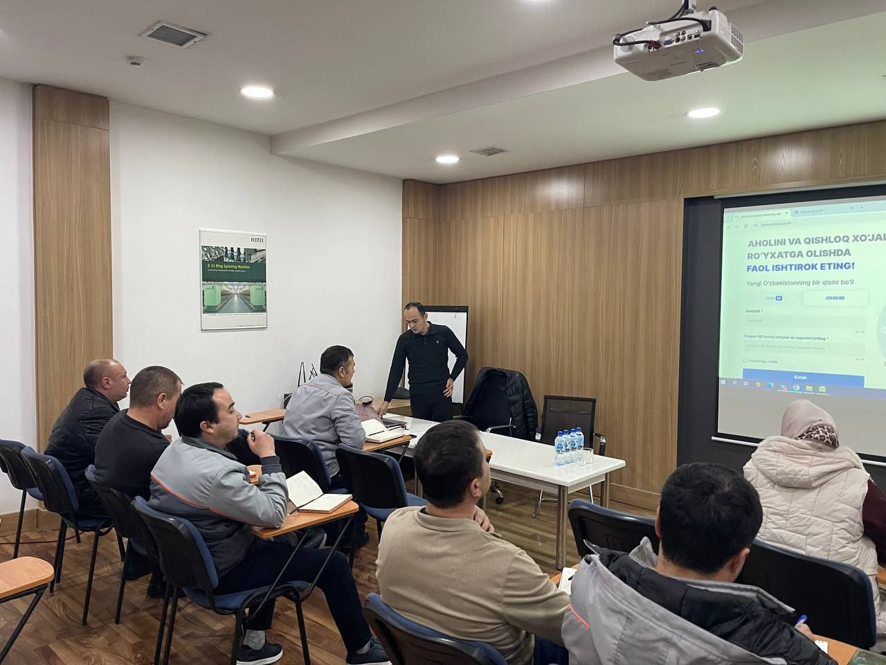 Mazkur tadbir Uztex Uchkurgan qo‘shma korxonasi xodimlarining ro‘yxatdan o‘tish platformasidan to‘g‘ri va samarali foydalanish ko‘nikmalarini shakllantirish, ma’lumotlarni aniq va tartibli kiritish, shuningdek, ro‘yxatdan o‘tish jarayonining barcha bosqichlarini puxta o‘zlashtirishlariga ko‘maklashish maqsadida o‘tkazildi.