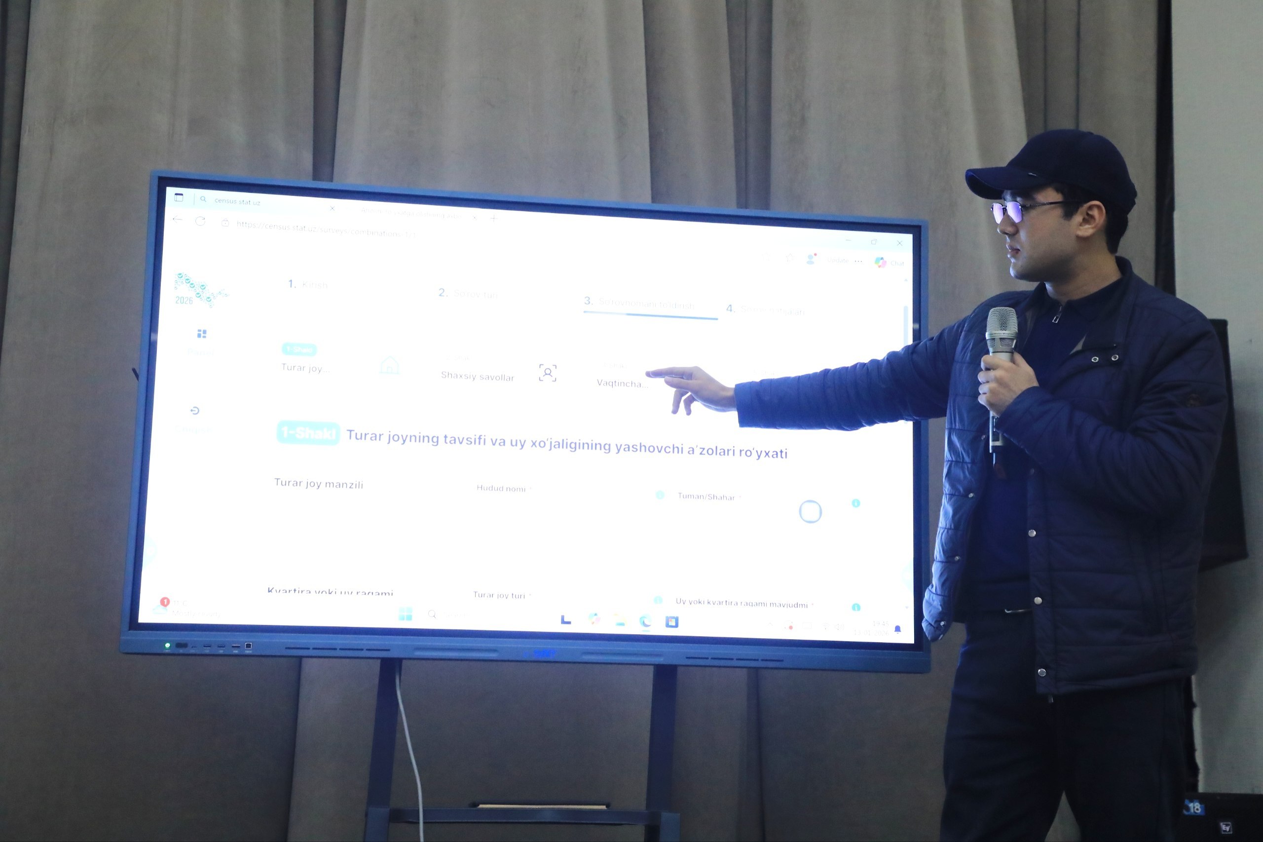 Tadbirda mas'ul xodimlar ishtirokchilar uchun taqdimot qilib, aholi va qishloq xo‘jaligini ro‘yxatga olishning ijtimoiy-iqtisodiy ahamiyati hamda jarayonlarining xalqaro amaliyotdagi o‘rni haqida atroflicha to‘xtalib o‘tdi.