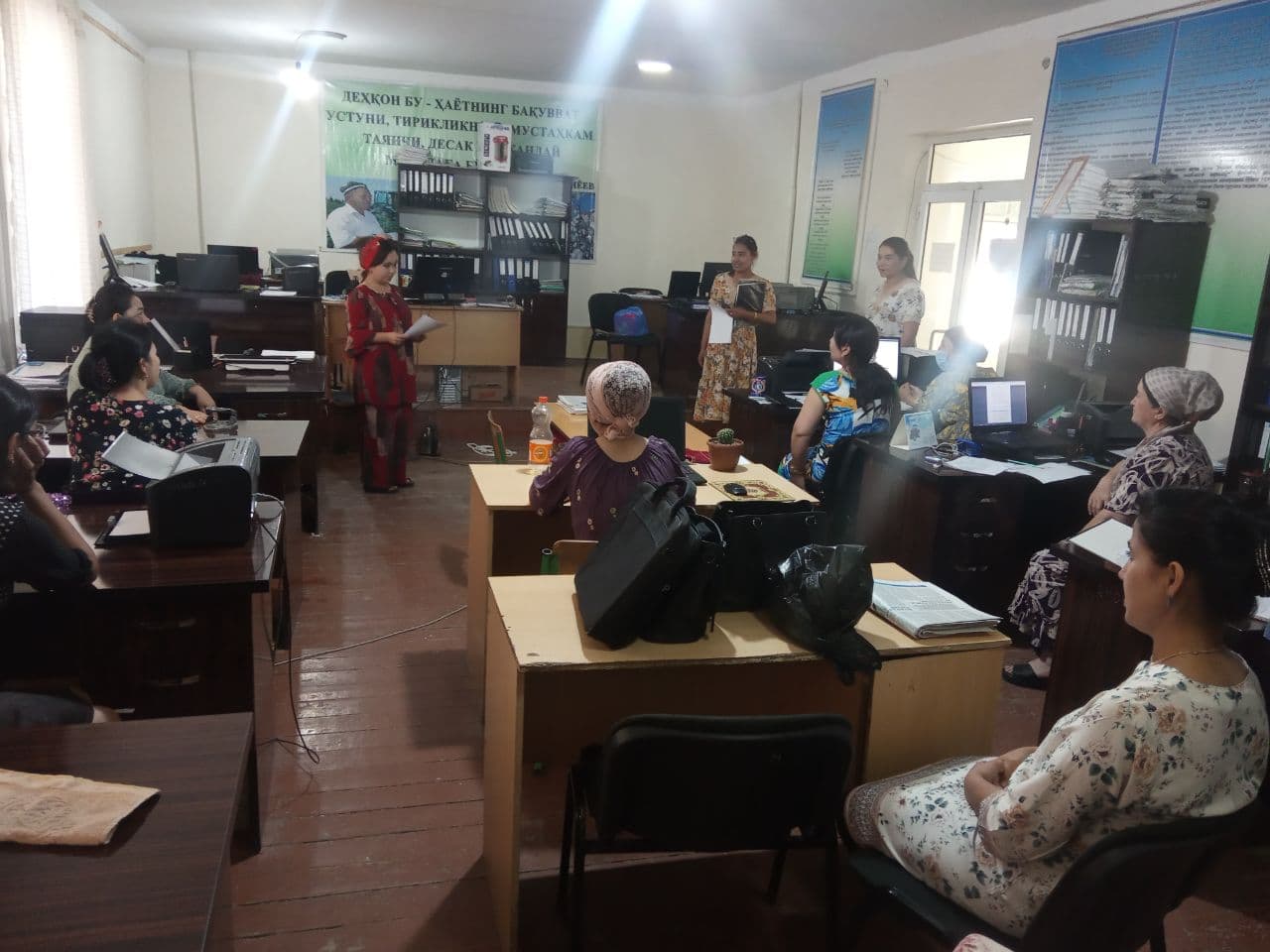 Tadbirda tuman statistika bo'limi xodimlari tomonidan O`zbekiston Respublikasi Vazirlar Mahkamasining 710-son Qarorining mazmun mohiyati to‘g’risida tushuntirishlar berib, aholini ro‘yxatga olishning maqsadi, ro‘yxatga olishning nima uchun zarurligi hamda qarorda aholini ro‘yxatga olish savolnomalari tasdiqlanganligi tog’risida tushuntirishlar berib o‘tildi.