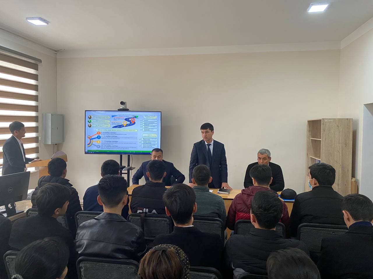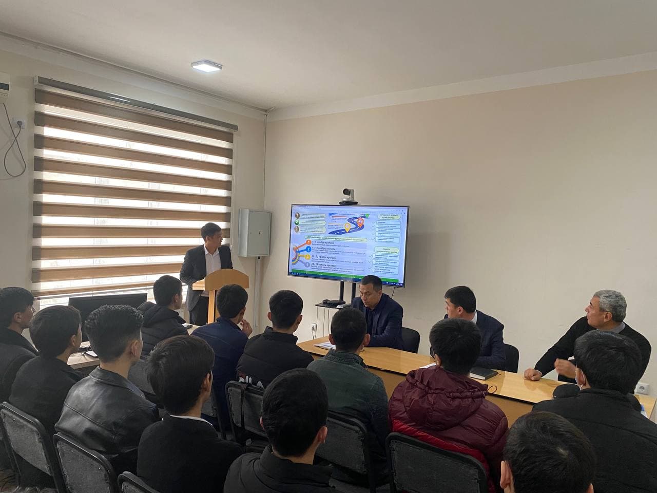 Tadbir avvalida boshqarma boshlig‘ining birinchi o‘rinbosari B. Xoliqov viloyatda statistika sohasida amalga oshirilayotgan ishlar, statistika axborotlarining haqqoniyligi va shaffofligini ta’minlash to‘g‘risida talabalarga tuchunchalar berdi.