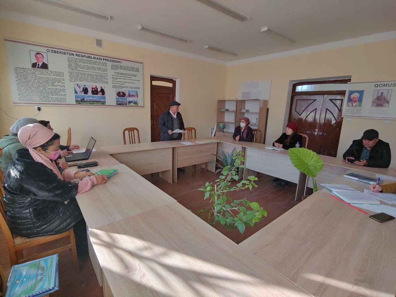 Tadbirda tuman statistika bo'limi xodimlari tomonidan O`zbekiston Respublikasi Vazirlar Mahkamasining 710-son Qarorining mazmun mohiyati to‘g’risida tushuntirishlar berib, aholini ro‘yxatga olishning maqsadi, ro‘yxatga olishning nima uchun zarurligi hamda qarorda aholini ro‘yxatga olish savolnomalari tasdiqlanganligi tog’risida tushuntirishlar berib o‘tildi.