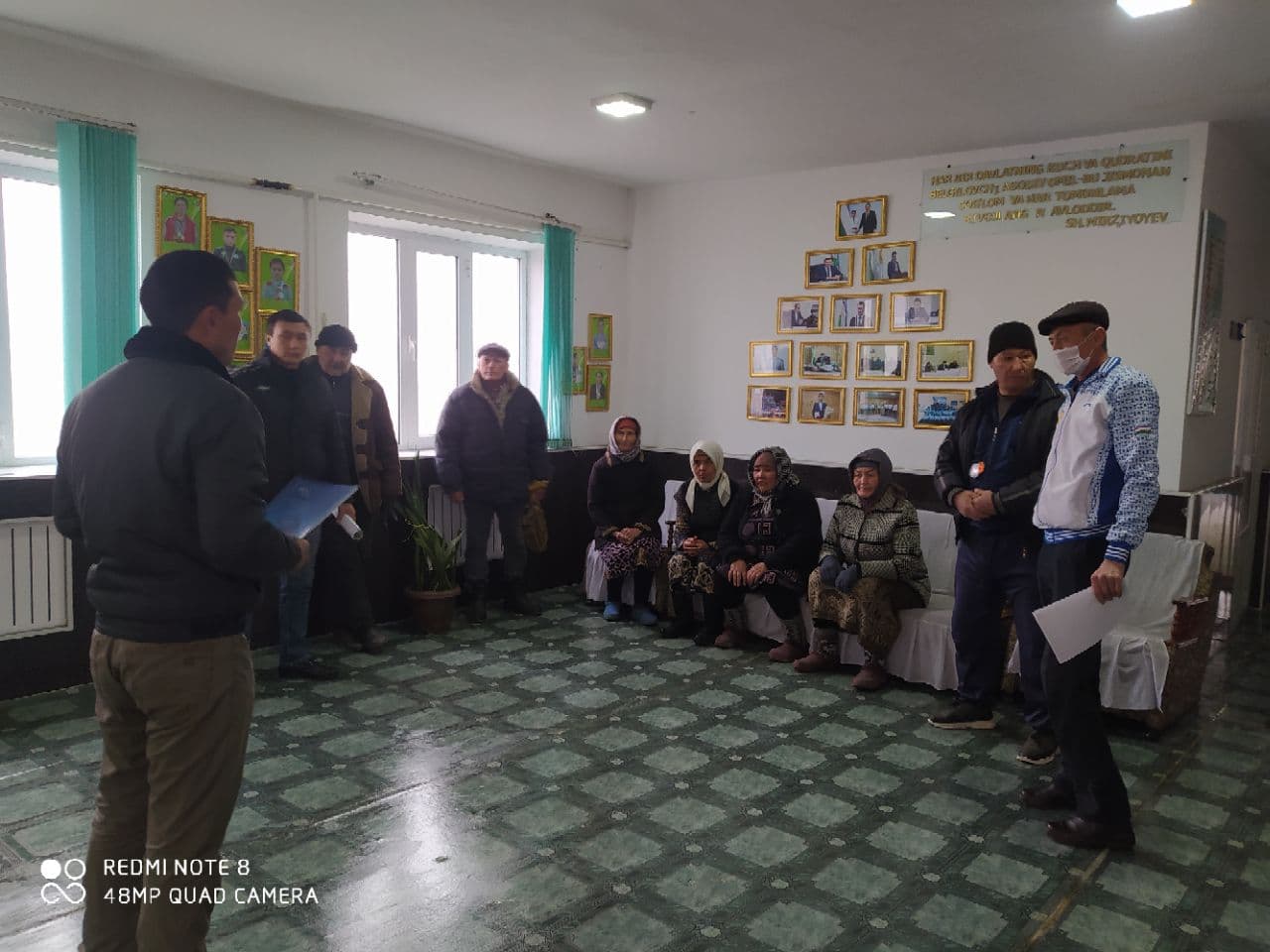 Tadbirda tuman statistika bo'limi xodimlari tomonidan O`zbekiston Respublikasi Vazirlar Mahkamasining 710-son Qarorining mazmun mohiyati to‘g’risida tushuntirishlar berilib, aholini ro‘yxatga olishning maqsadi, ro‘yxatga olishning nima uchun zarurligi hamda qarorda aholini ro‘yxatga olish savolnomalari tasdiqlanganligi tog’risida ma'lumotlar berildi.