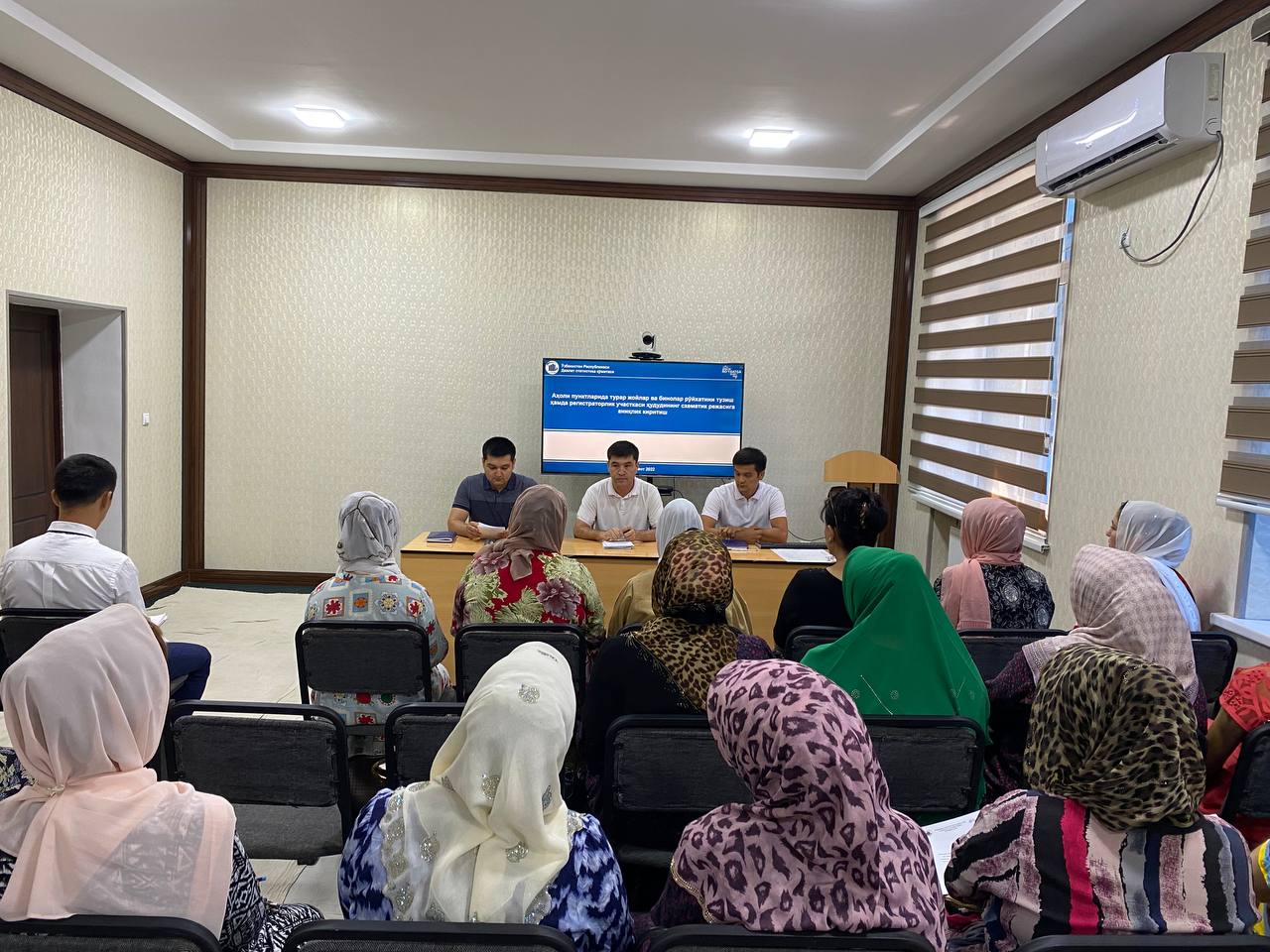 O‘zbekiston Respublikasi Vazirlar Mahkamasining 2020- yil 11- noyabrdagi "O‘zbekiston Respublikasida 2023- yilda aholini ro‘yxatga olishga tayyorgarlik ko‘rish va uni o‘tkazish chora-tadbirlari to‘g‘risida"gi 710-son Qaroriga muvofiq, 2022- yilning 1-31 avgust kunlari respublikamizning barcha hududularida aholi punktlarida turar joylar va binolar ro‘yxatini tuzish hamda registratorlik hududining sxematik rejasiga aniqlik kiritish maqsadida registratorlar ishga jalb qilinishi belgilangan. Ishga jalb qilingan registratorlarga joriy yilning 1-3 avgust kunlariga qadar maxsus ishlab chiqilgan reja asosida o‘quv seminarlar tashkil etilmoqda.