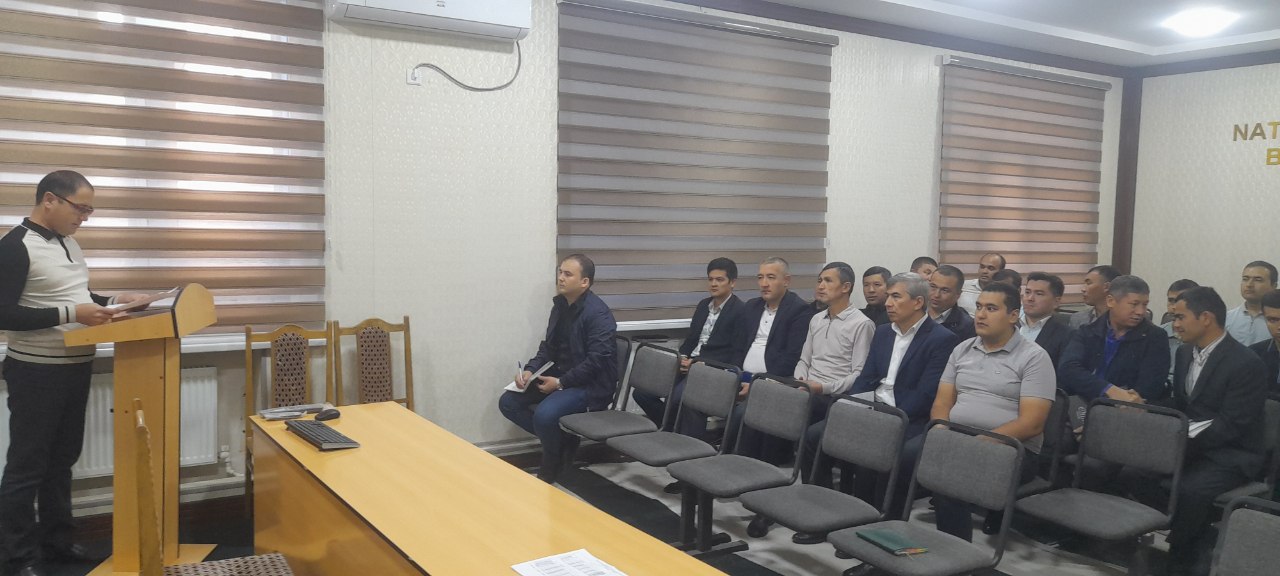 O‘quv mashg‘ulotida boshqarma bosh yuriskonsulti B.Ismatullayev O’zbekiston Respublikasining 03.08.2022-yildagi “O’zbekiston Respublikasining ayrim qonun hujjatlariga o‘zgartish va qo‘shimchalar kiritish, shuningdek ayrim qonun hujjatlarini o‘z kuchini yo‘qotgan deb topish to‘g‘risida” O’RQ-788-son Qonunining mazmun-mohiyatini xodimlarga tushuntirib berdi.