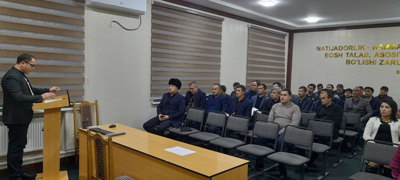 So‘ng boshqarma boshlig‘i S.Melixo‘jayev ham so‘zga chiqib unda korrupsiya o‘zimizga, balki davlatimizni kelajagiga ham to‘siq bo‘lishini, hammamiz uni oldini olish borasida birgalikda kurash olib borishimiz lozimligini, kelgusida korrupsiyaga yo‘l qo‘ygan xodimlar davlat fuqarolik xizmatiga qabul qilinmasligi Qonun bilan mustahkamlab qo‘yilayotganligini haqida ma'lumotlar berdi.