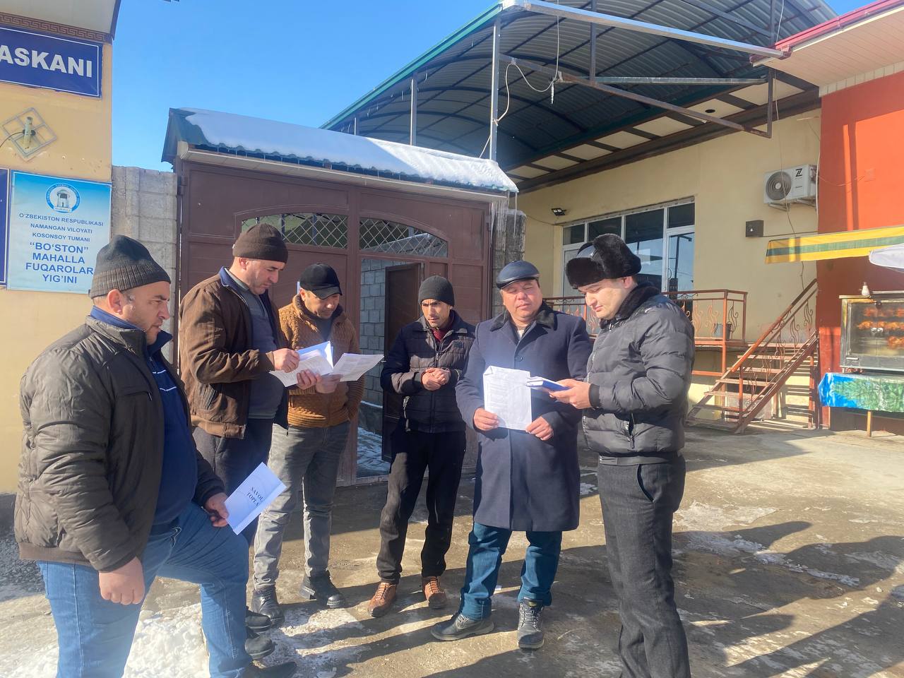 Joriy yilning 18- yanvar kuni Namangan viloyati statistika boshqarmasi Turmush darajasi statistikasi va uy xo‘jaliklari kuzatuvlari bo‘limi boshlig’i A. Ayubjanov Kosonsoy tumani “Uzunqishloq” hamda "Bo‘ston" MFYlarga borib, kuzatuvning maqsad vazifalari bo‘yicha atroflicha ma’lumot berib o‘tdi. Shuningdek, MFY xodimlari va faollariga seminar treninglar o'tkazildi.