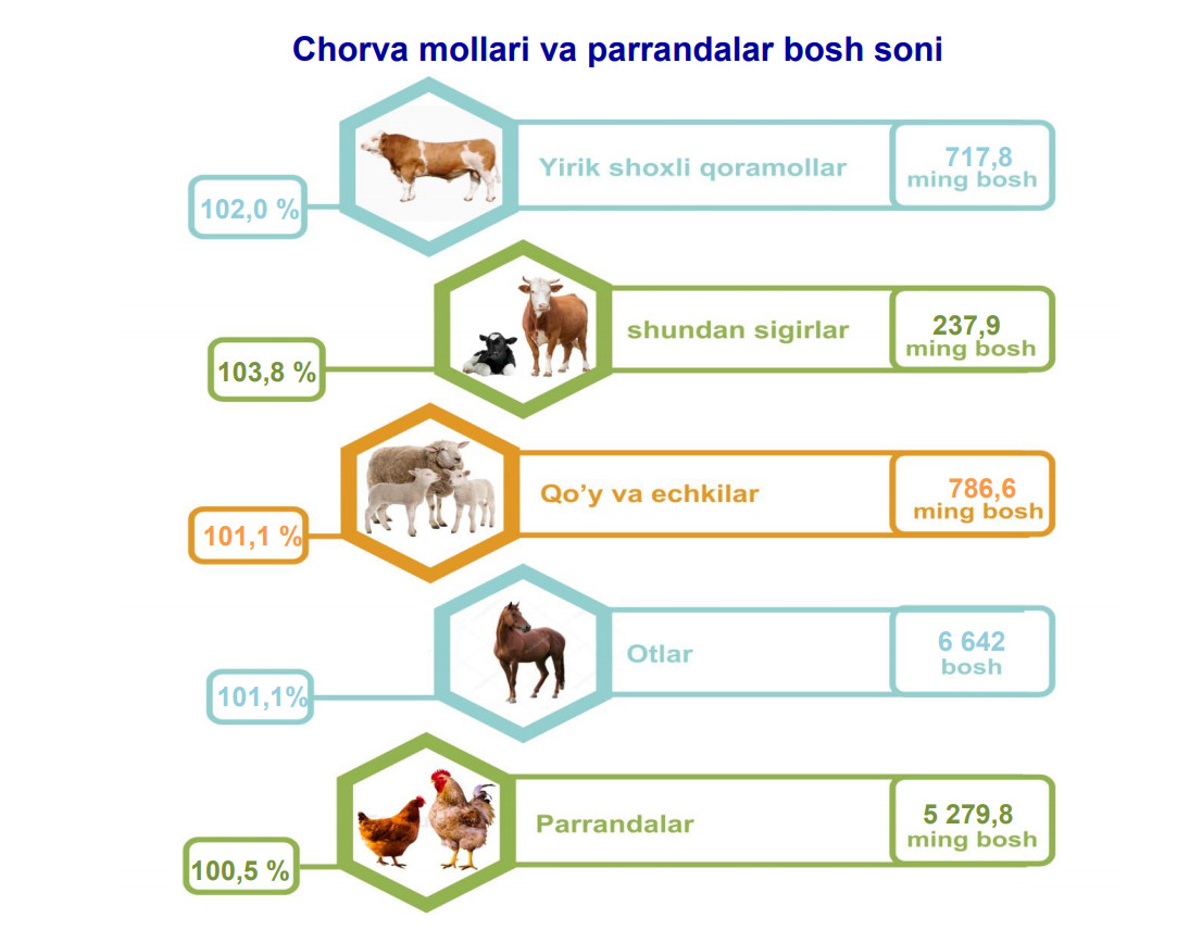 Namangan viloyati bo‘yicha 2021– yilning yanvar– dekabr oylarida barcha toifadagi xo‘jaliklar tomonidan 296 774 t. meva va rezevor mahsulotlari yetishtirilgan. Bu ko‘rsatkich 2020– yilning yanvar– dekabr oylariga nisbatan 4,8 % ga ko‘paygan.