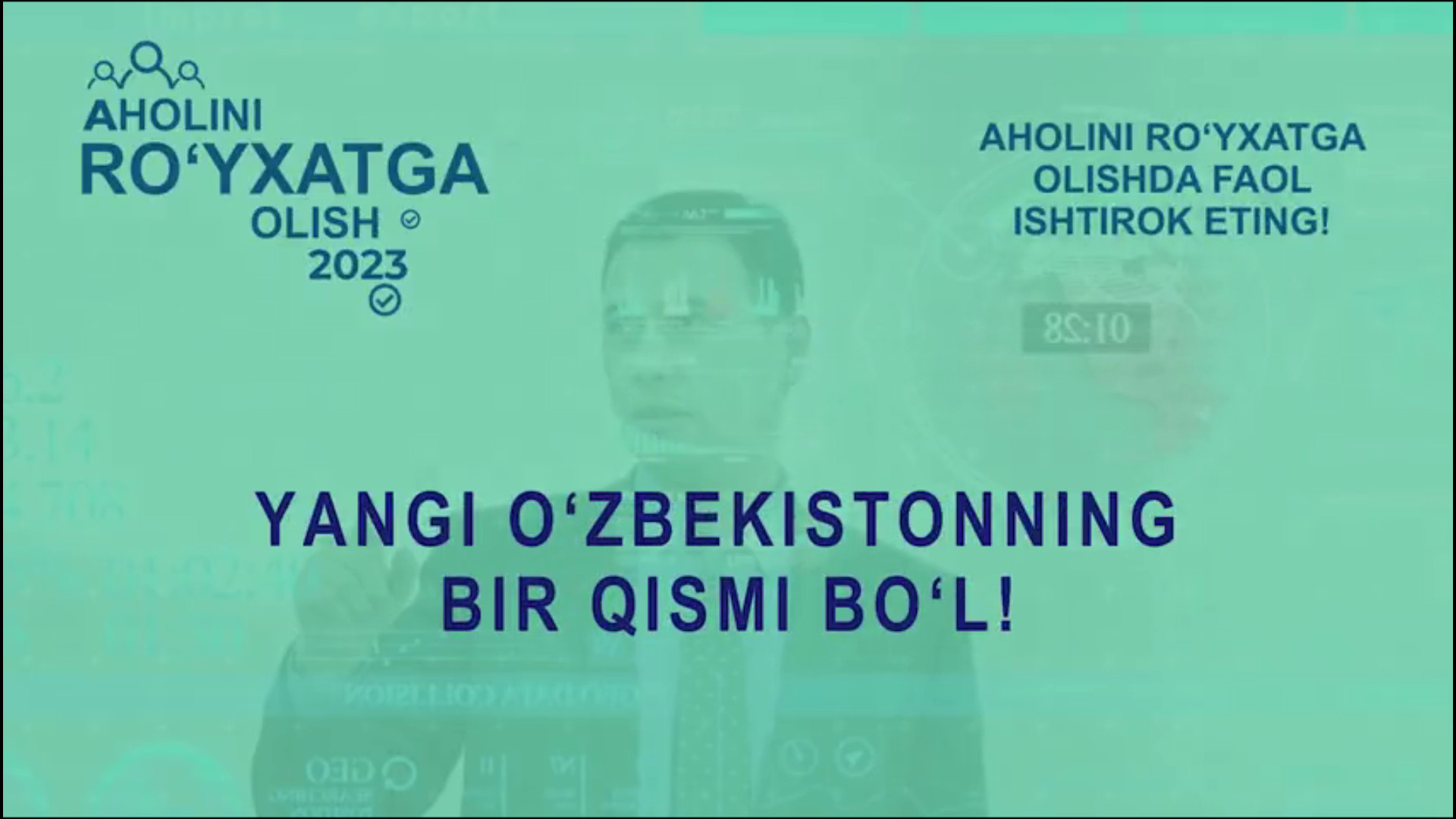 Ma'lumki O‘zbekiston Respublikasida 2023- yilda aholini ro‘yxatga olish tadbiri o‘tkaziladi. Ushbu tadbirni o‘tkazishdan asosiy maqsad — Oʼzbekiston Respublikasida aholi tarkibining holati va rivojlanish dinamikasi haqida mamlakatni sotsial-iqtisodiy va ijtimoiy-siyosiy rivojlantirish sohasidagi davlat siyosatining ustuvor yoʼnalishlarini belgilash va uni amalga oshirish uchun zarur boʼlgan ishonchli va xolis axborotni olishdan iboratdir.